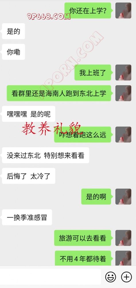 这次是良家是一位海南女大学生,在东北读大专,护士方面专业,20岁左右,有男朋友,即使分手了也会很快找下一个,从2020年国庆开始,至今还有着她的微信,但是几乎不聊天了。