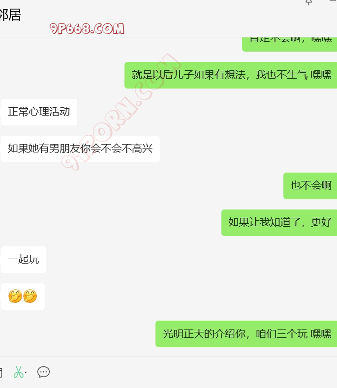 聊着聊着,又加入了 我爸爸的话题,先让她来我家做,她怕媳妇从那个家来拿东西,我说即使拿东西也都是我爸爸来,如果爸爸来了,那就正好让他也加入。她非常配合,各种话题,她都完全配合。